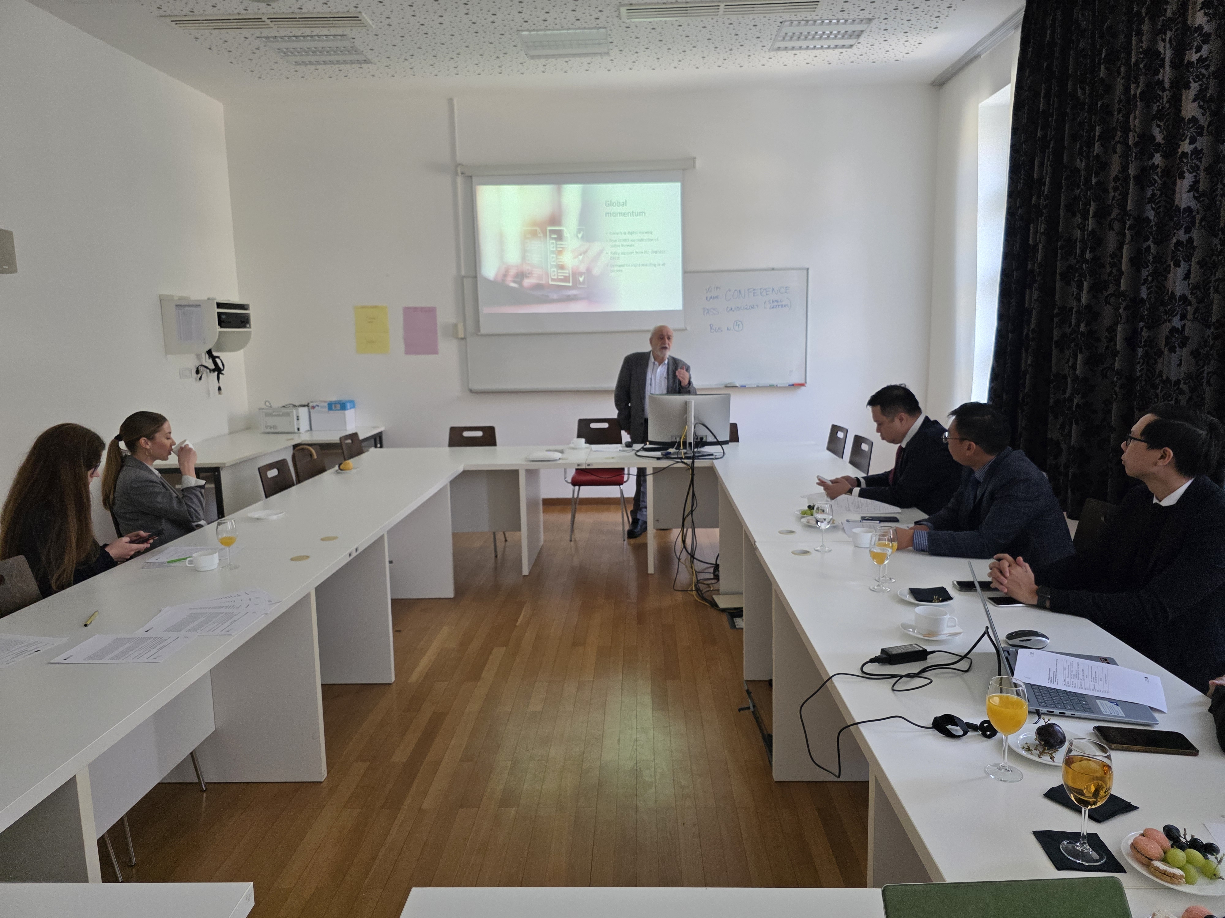 - Hội nhập cùng tiêu chuẩn toàn cầu: GS. Nebojša Stojčić, Hiệu trưởng UNIDU, đã chia sẻ về tầm quan trọng của việc xây dựng năng lực số bền vững. Đoàn HUB đã cùng thảo luận về cách thức tích hợp các module đào tạo ngắn hạn về AI và Fintech vào khung chứng chỉ vi mô, giúp người học dễ dàng tiếp cận tri thức mới.